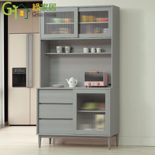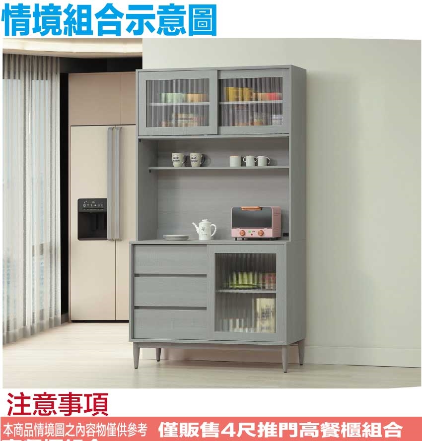 【綠家居】維亞爾4尺推門三抽高餐櫃組合