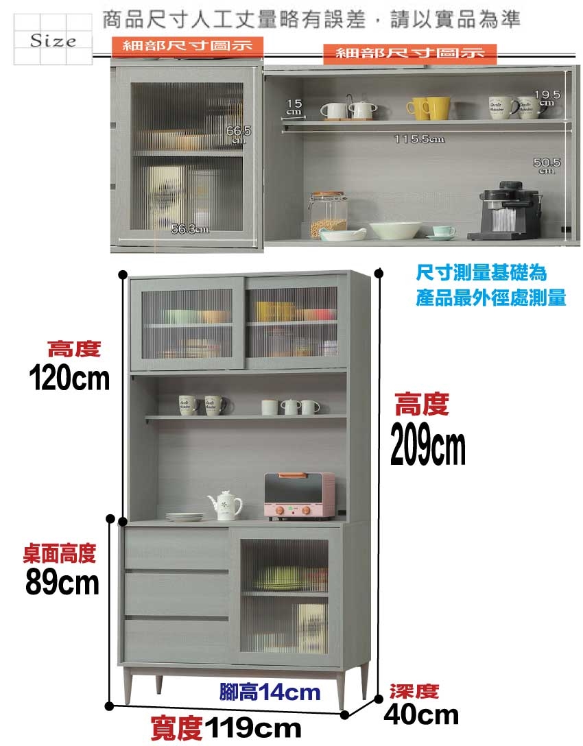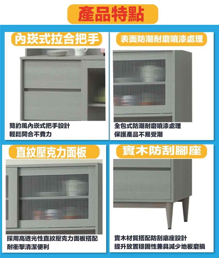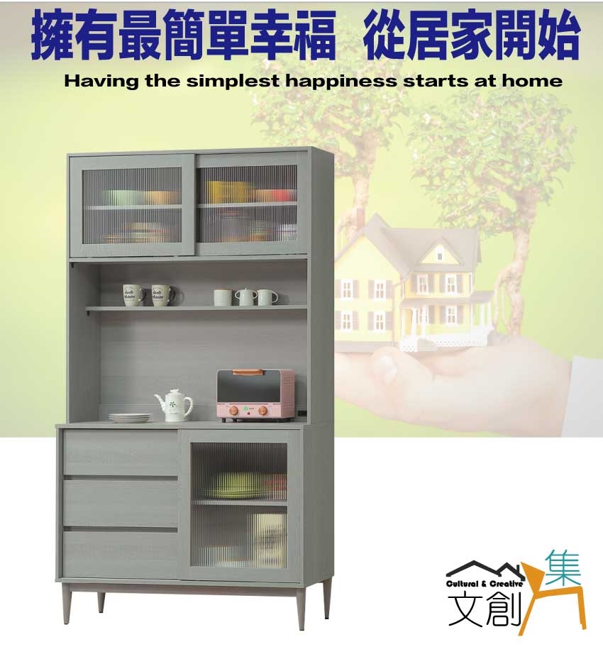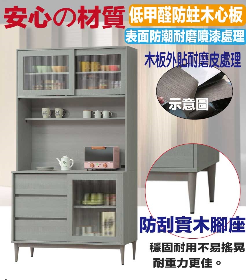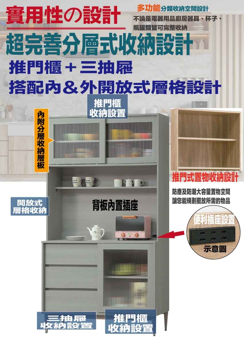 - ◆產品名稱:【綠家居】維亞爾4尺推門三抽高餐櫃組合