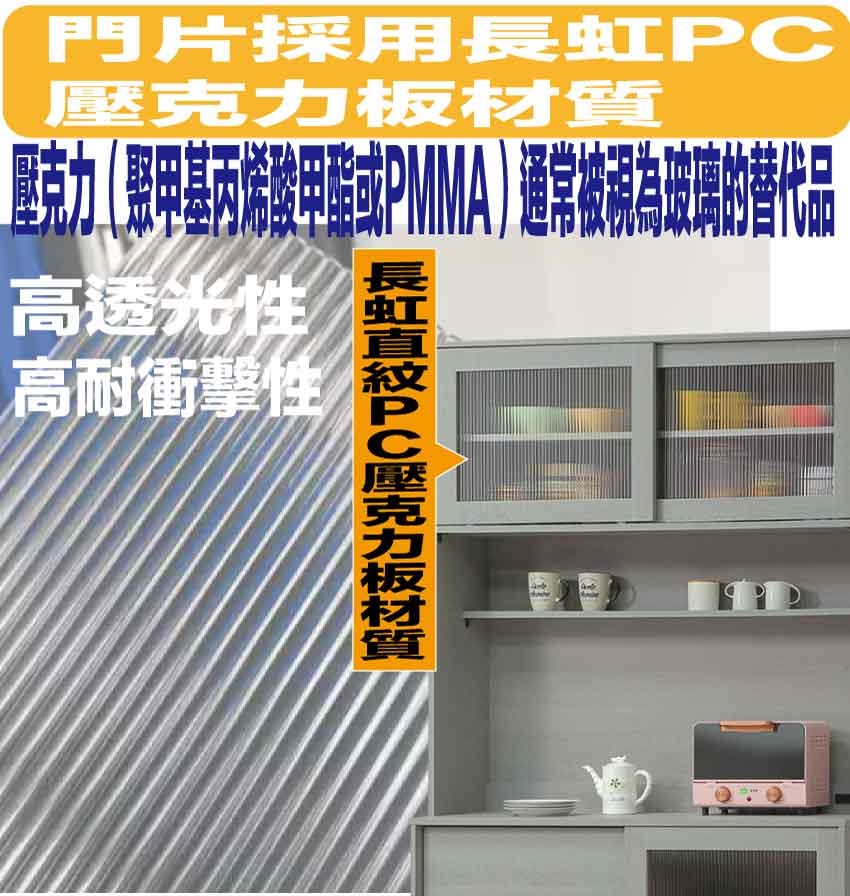 材質:防蛀木心板+防刮實木腳座+長虹PC材質門片+五金滑軌結構