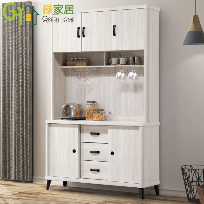 【綠家居】杰特淺橡4尺開&推門三抽高餐櫃組合