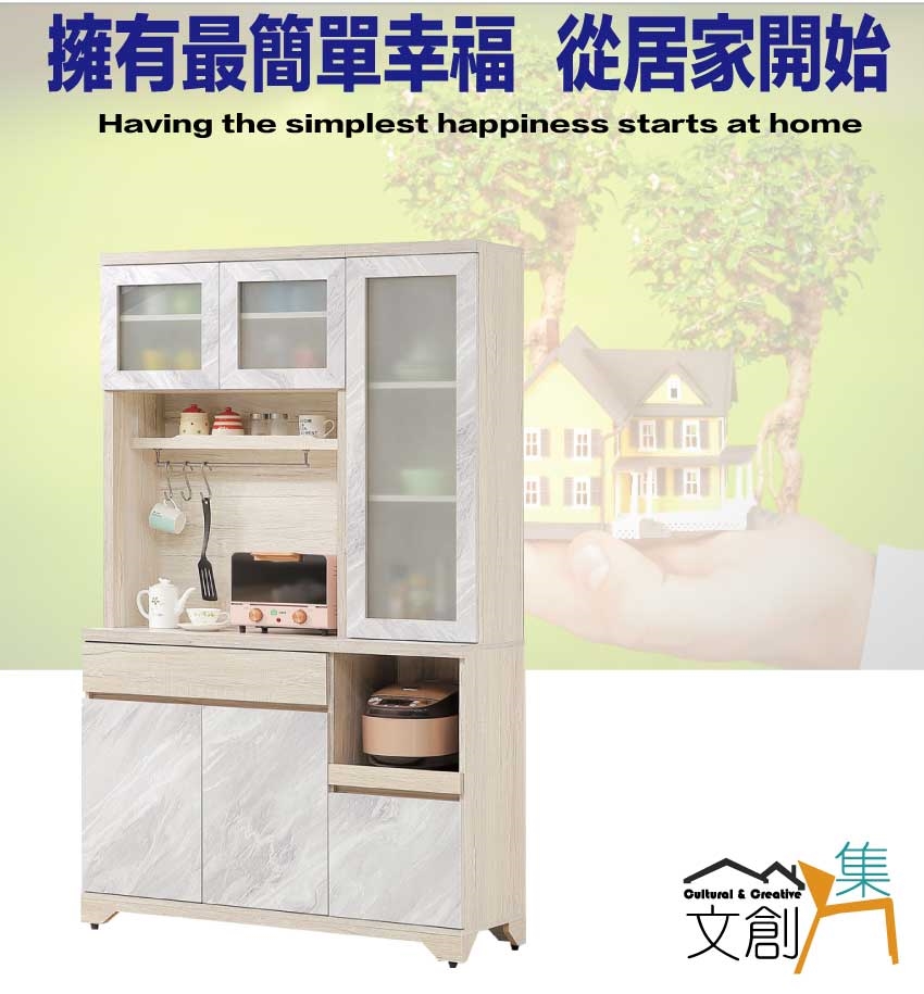 【綠家居】高利拉盤4尺五門二抽雙色高餐櫃組合