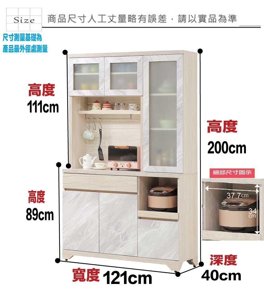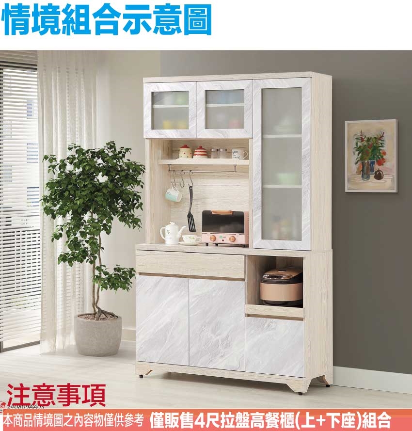 - ◆產品名稱:【綠家居】高利拉盤4尺五門二抽雙色高餐櫃組合