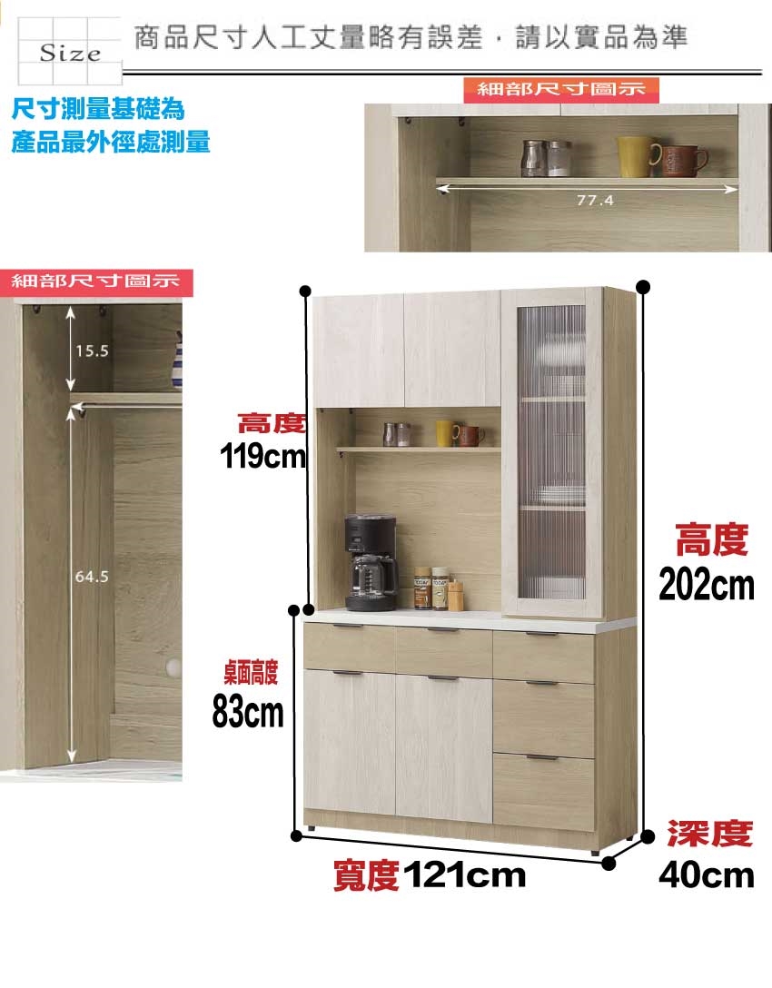 - ◆產品名稱:【綠家居】蘿克4尺五門五抽高餐櫃組合