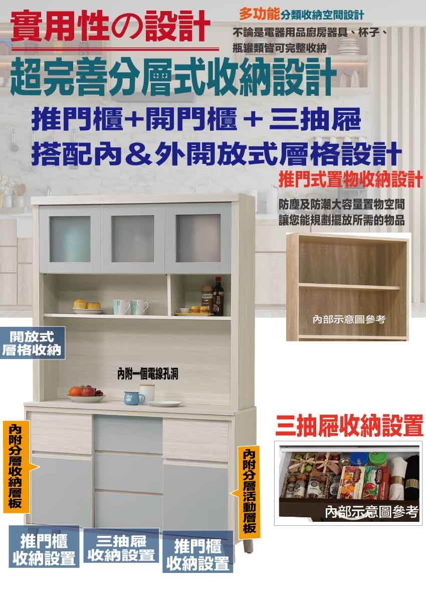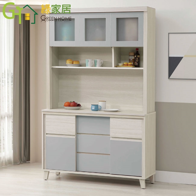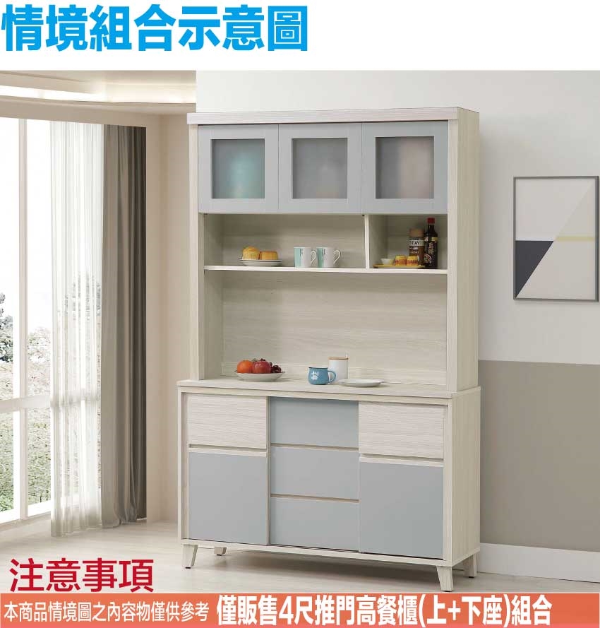 【綠家居】奇伊雙色4尺推&開門高餐櫃組合