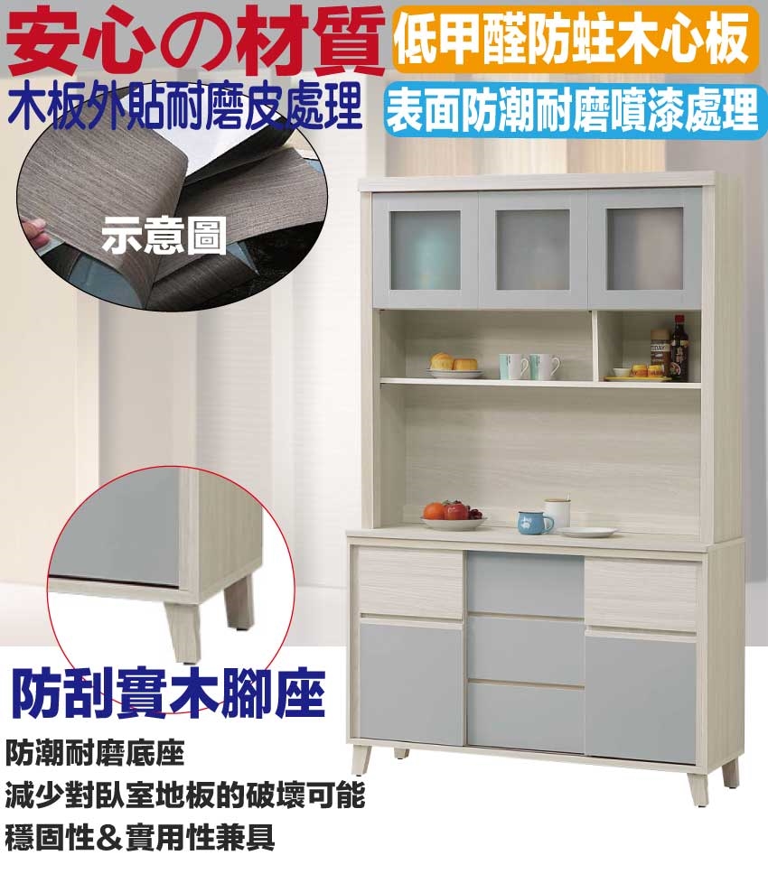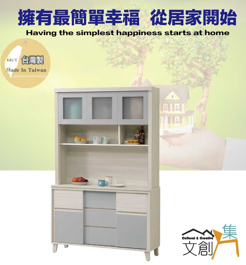 - ◆產品名稱:【綠家居】奇伊雙色4尺推&開門高餐櫃組合