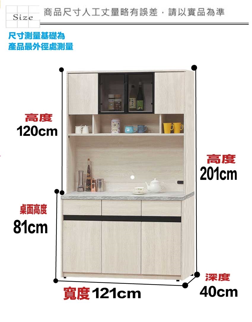 尺寸:(寬)121x(深)40x(高)201/公分