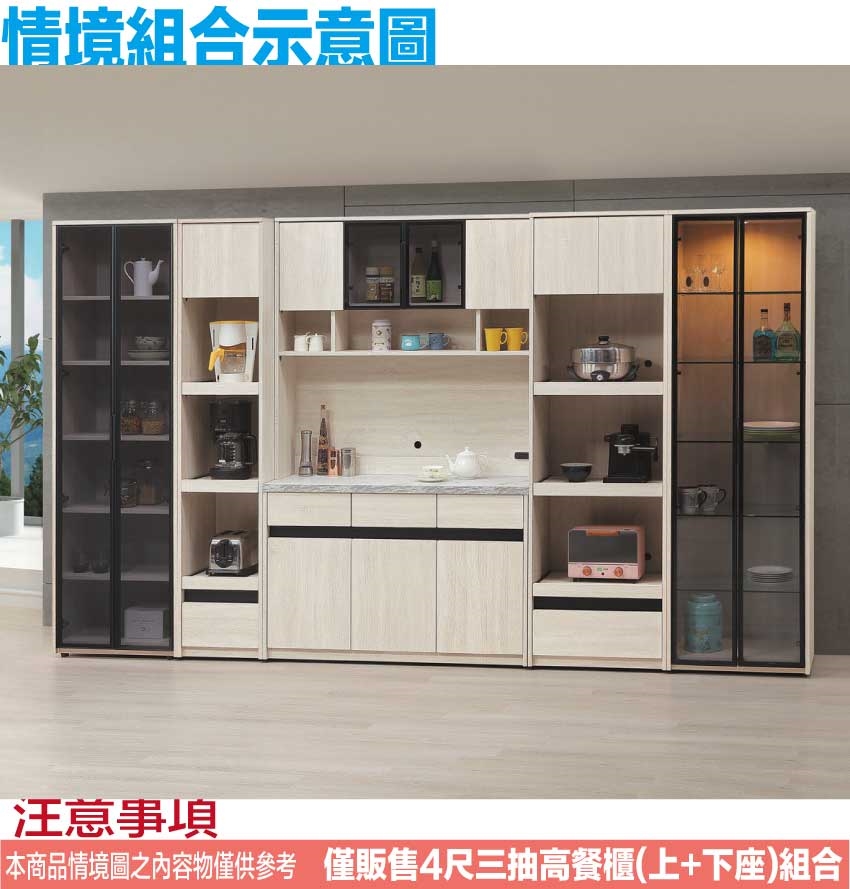 【綠家居】達斯4尺鋁框玻璃高餐櫃組合