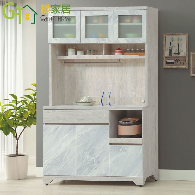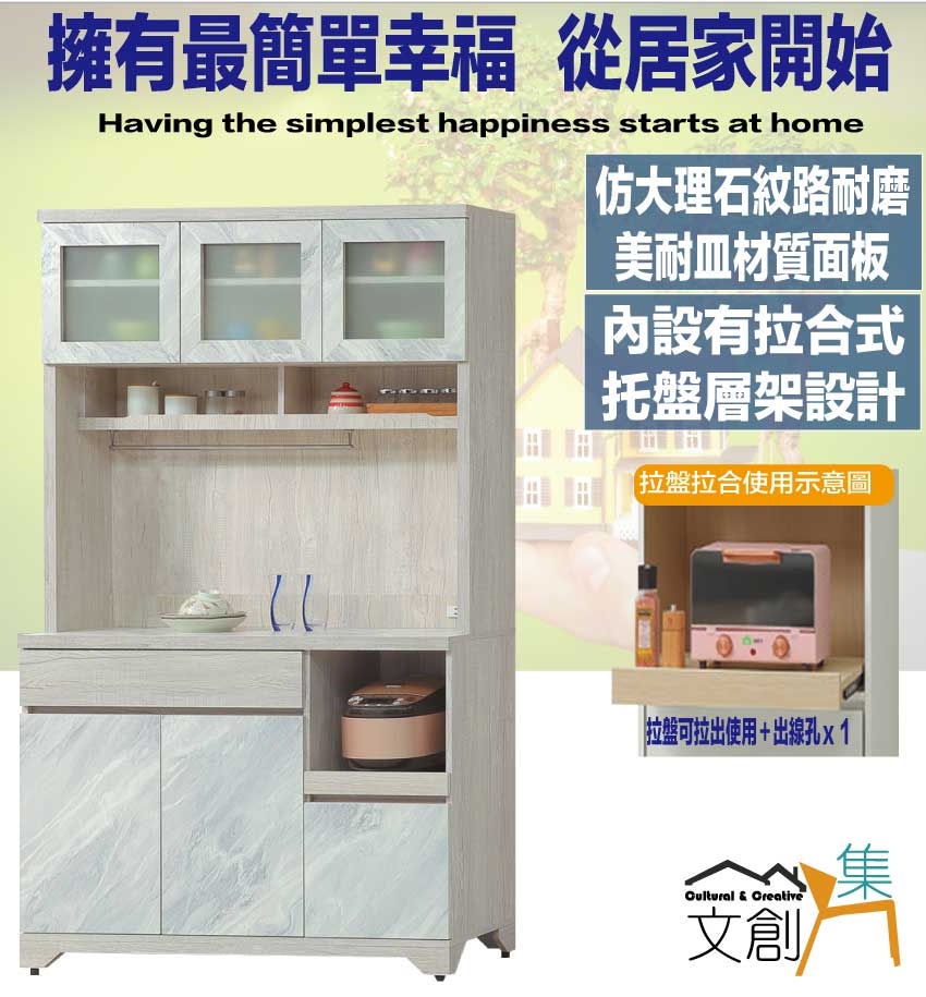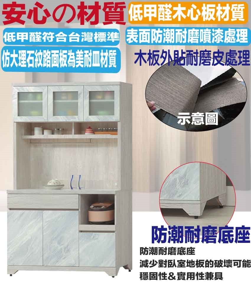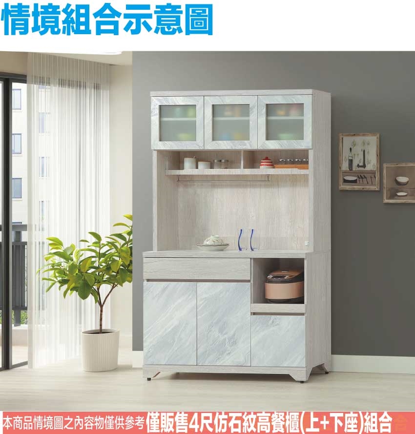 - ◆產品名稱:【綠家居】羅登4尺拉盤二抽高餐櫃組合(仿大理石紋路耐磨美耐皿面板)