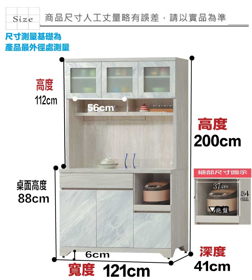 - 尺寸:(寬)121x(深)41x(高)200/公分