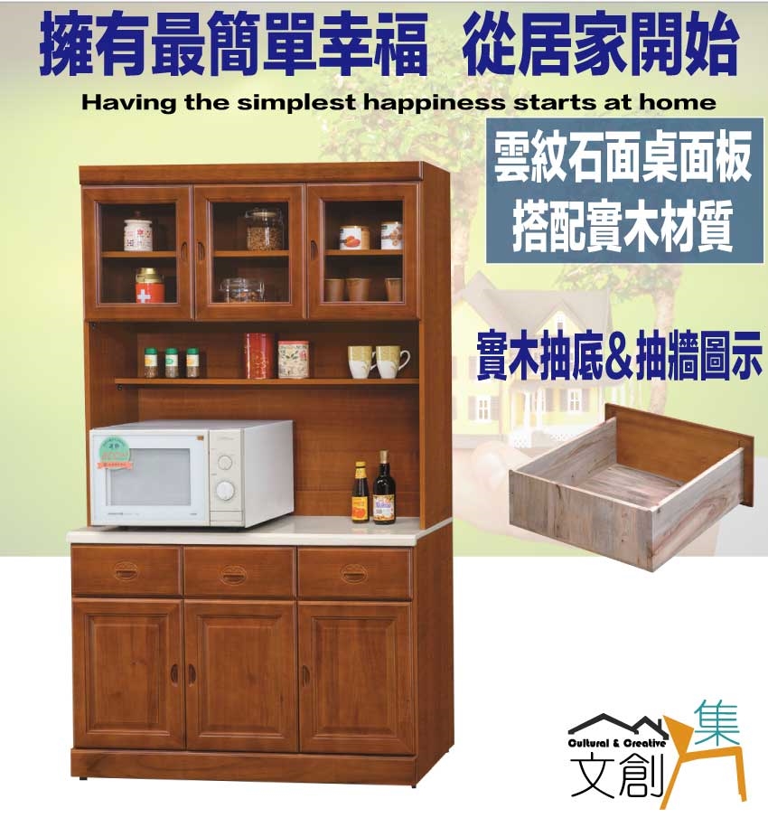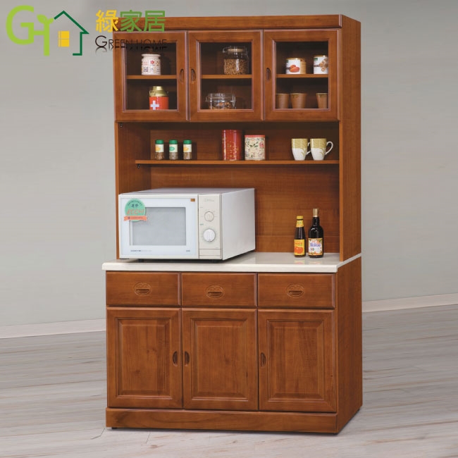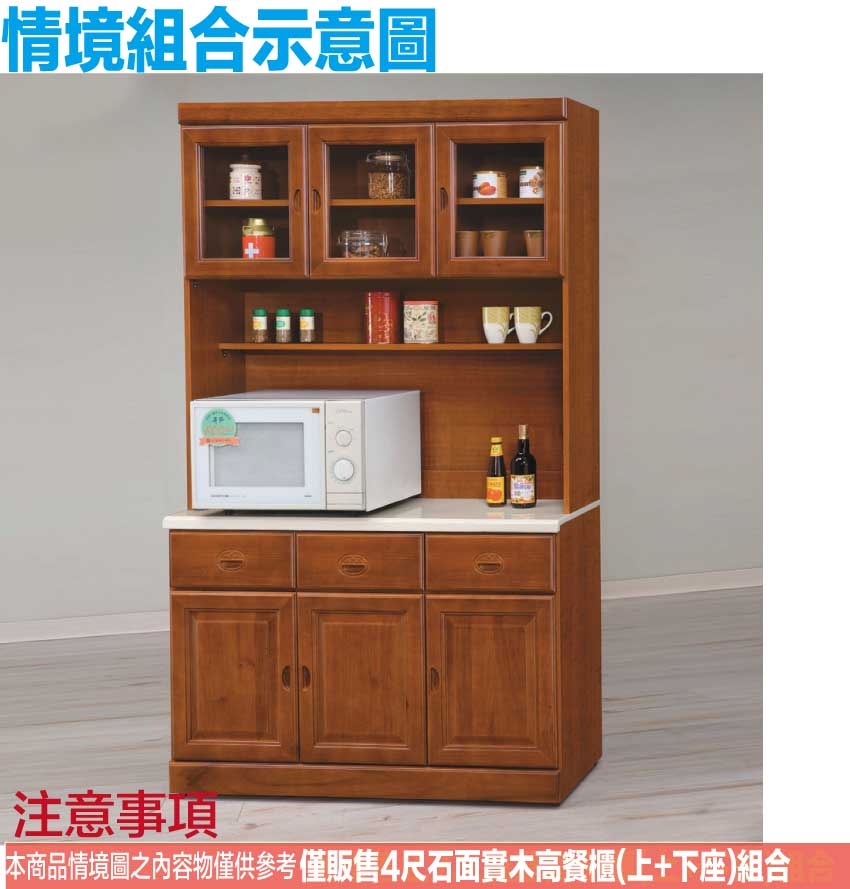 【綠家居】羅西4尺實木雲紋石面高餐櫃組合