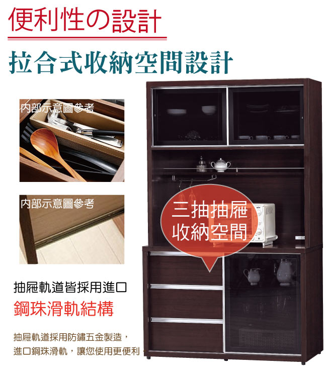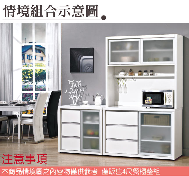 【綠家居】哈雅納 時尚4尺鋁框推門餐櫃/收納櫃組合(二色可選&上+下座) 以時尚的美型設計+防蛀木心板+鋼珠滑軌結構+4mm高硬度強化玻璃+防鏽鋁製邊框+優利坦抗磨三層全包式塗漆塗裝等材質製作,讓您使用防潮防蛀更安心,耐用牢固承重量高。餐櫃組合採用三抽屜+三門櫃+開放式層格等收納置物等多重收納設計,另外抽屜軌道搭配鋼珠滑軌安全性結構,滑順好開,操作變得容易自如,使用不費力照料您的生活【綠家居】哈雅納 時尚4尺鋁框推門餐櫃/收納櫃組合(二色可選&上+下座) 全由專人配送到家,專業安心服務,替你省下更多時間