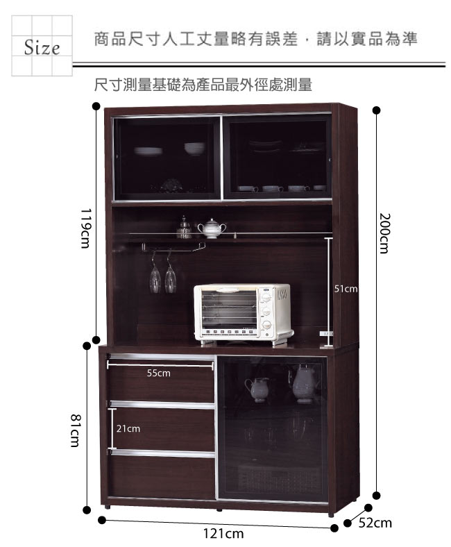 產品尺寸:(寬)121x (深) 52x(高) 200/ 公分