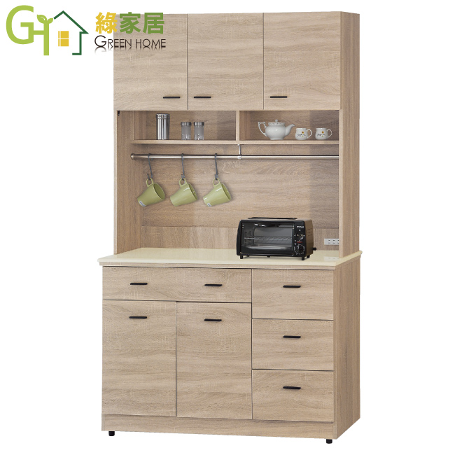 【綠家居】凱薩妮 橡木紋4尺雲紋石面收納櫃/餐櫃組合(上+下座)