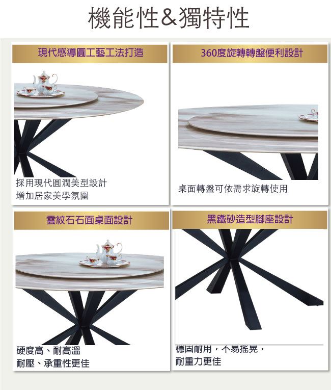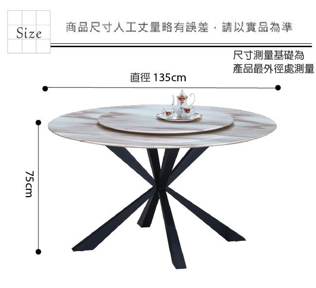 材質 | ◆產品名稱: 【綠家居】路派 時尚5尺雲紋石面長方形餐桌 產品尺寸: 尺寸:(寬)150x(深)90x(高)75/公分 ◆材質: 材質:防鏽黑漆鐵材+黑鐵砂腳座+12mm雲紋石面板