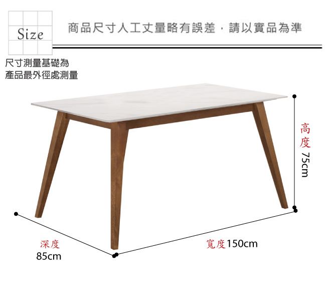 材質 | ◆產品名稱:【綠家居】巴卡莉5尺高硬度岩板實木餐桌 餐桌尺寸:(寬)150x(深)85x(高)75/公分 ◆材質: 材質:橡膠木實木+防潮實木腳座+12mm高硬度岩板桌面板+表面採用防潮耐磨噴漆處理