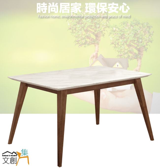 【綠家居】哈利4尺雲紋石面實木餐桌