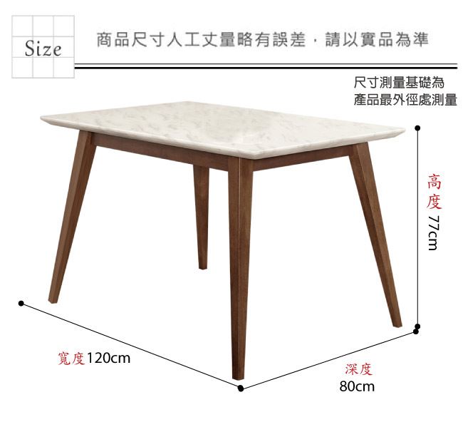 材質 | ◆產品名稱:【綠家居】哈利4尺雲紋石面實木餐桌 餐桌尺寸:(寬)120x(深)80x(高)77/公分 ◆材質: 材質:橡膠木實木+防潮實木腳座+15mm雲紋石面桌面板+表面採用防潮耐磨噴漆處理
