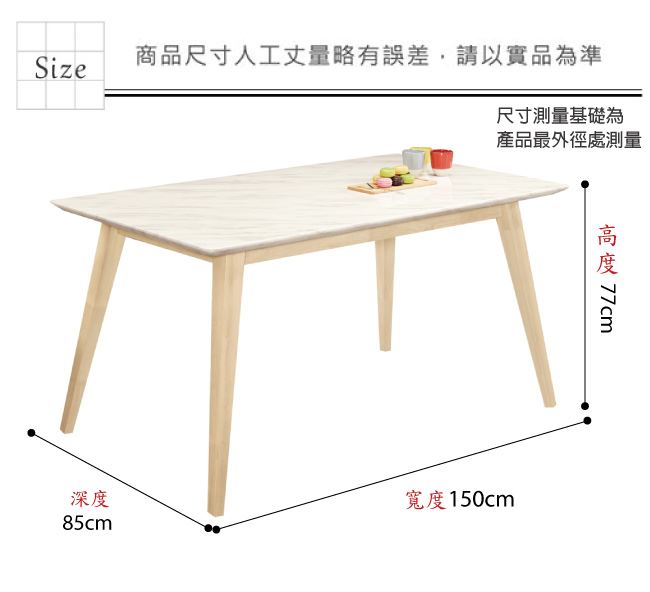 材質 | ◆產品名稱:【綠家居】哈華爾5尺雲紋石面實木餐桌 餐桌尺寸:(寬)150x(深)85x(高)77/公分 ◆材質: 材質:橡膠木實木+防潮實木腳座+15mm雲紋石面桌面板+表面採用防潮耐磨噴漆處理
