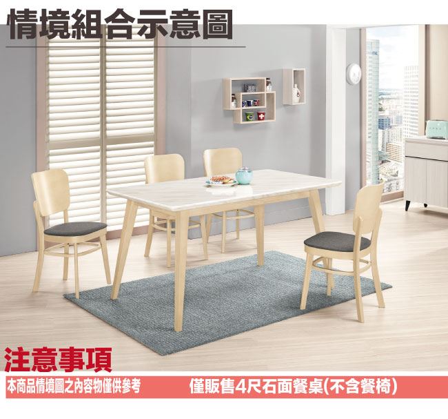 【綠家居】哈華爾4尺雲紋石面實木餐桌