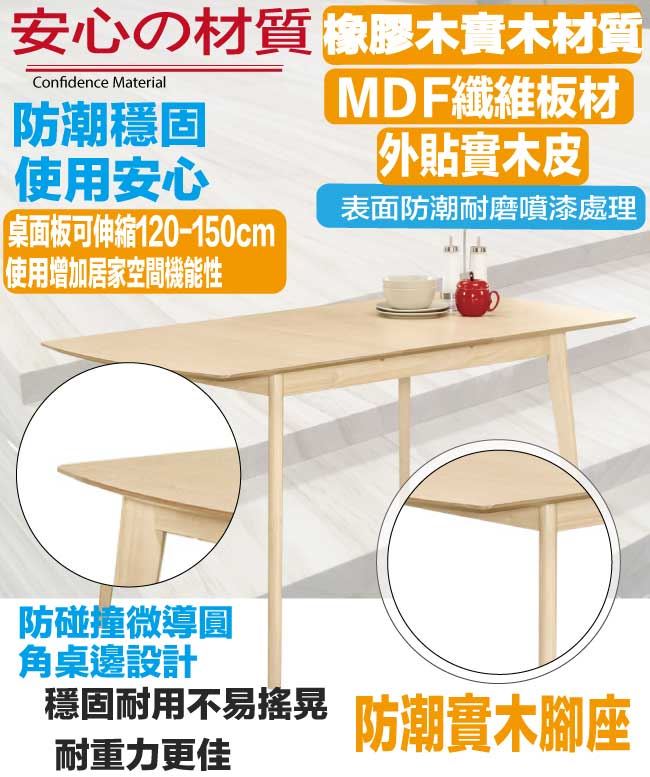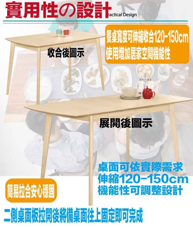 【綠家居】德斯韋4尺可伸縮機能實木餐桌(120-150cm伸縮使用)