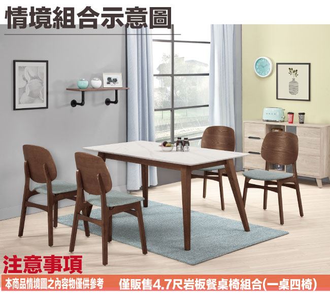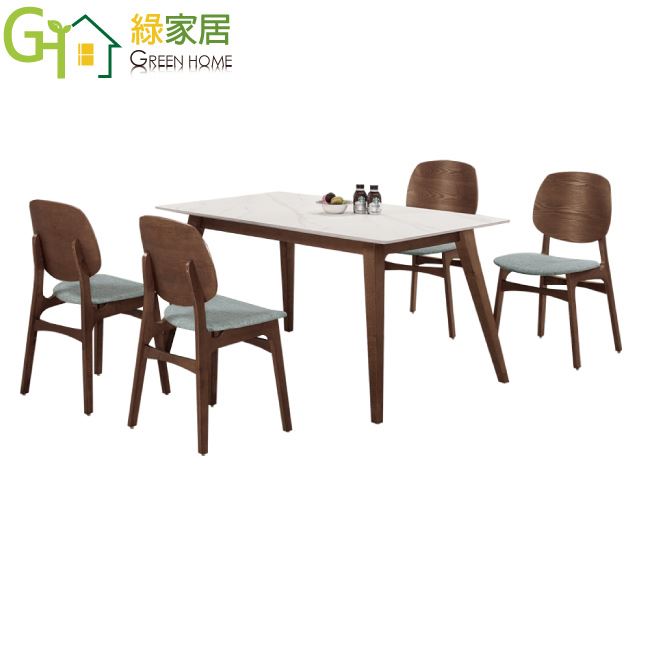 【綠家居】艾琳4.7尺岩板實木餐桌布餐椅組合(一桌四椅組合)