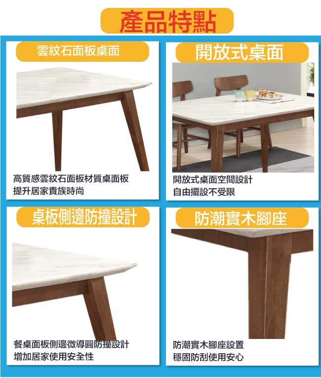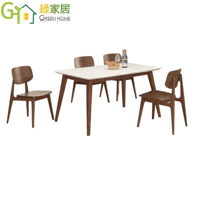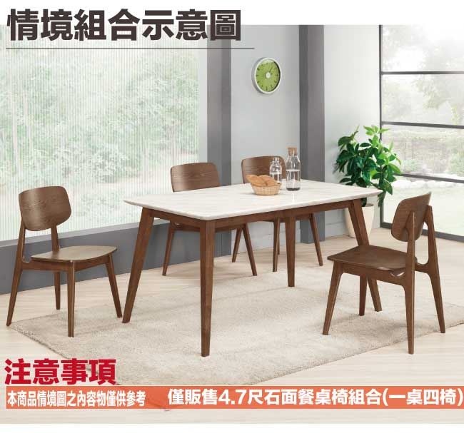【綠家居】哈利4.7尺雲紋石面實木餐桌餐椅組合(一桌四椅組合)