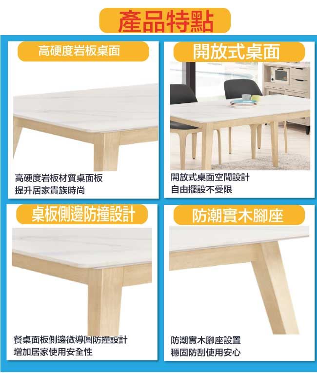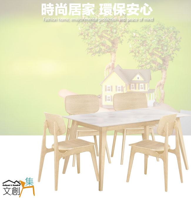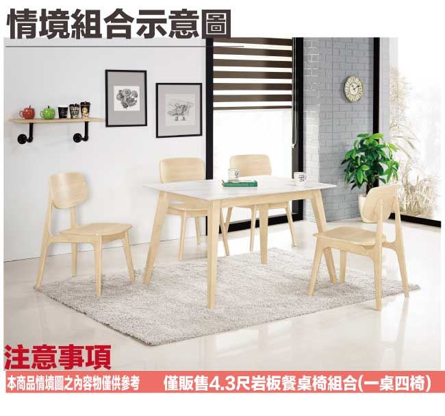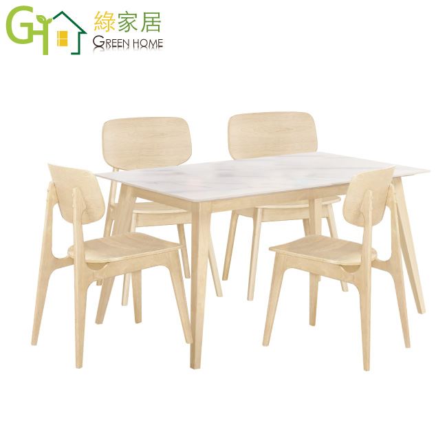 【綠家居】卡蜜4.3尺岩板實木餐桌椅組合(一桌四椅組合)