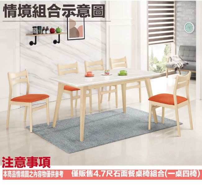 【綠家居】哈華爾實木4.7尺雲紋石面餐桌布餐椅組合(一桌四椅組合)