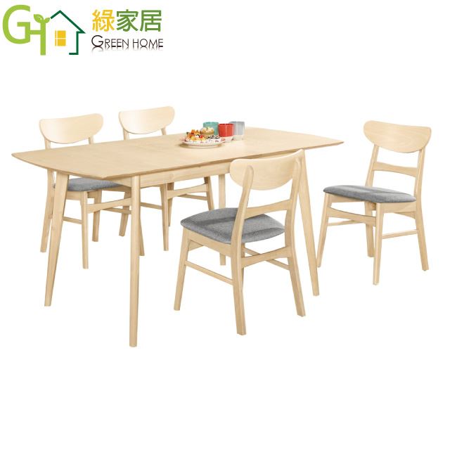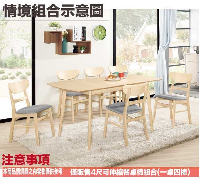 【綠家居】德斯韋4尺可伸縮實木餐桌布餐椅組合(一桌四椅組合+120-150cm伸縮使用)