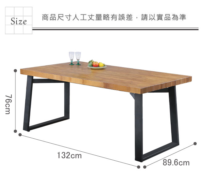餐桌:(寬)132x (深)89.6 x(高)76 / 公分