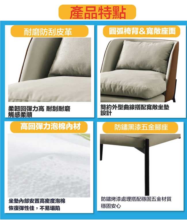 商品 介紹 | 【綠家居】克萊雙色耐刮科技皮革餐椅/休閒椅四入組合(二色可選+四張休閒椅組合販售出貨) 二色可選+四張休閒椅組合販售出貨+現代簡約風格+安心材質製造,使用放心+搭配居家更便利,整體採用防鏽黑漆五金腳座+鐵製椅身底框+耐磨防刮科技皮革+高回彈泡棉等材質製造 ,全由專人配送到家,專業安心服務,替你省下更多時間! 請注意:本賣場為四入休閒椅組合販售,接獲訂單時出貨以四張休閒椅組合為單位出貨 【商品特色】 二色可選+四張休閒椅組合販售出貨+現代簡約風格+安心材質製造,使用放心+搭配居家更便利 防鏽黑漆五金腳座+鐵製椅身底框+耐磨防刮科技皮革+高回彈泡棉等材質製造 此商品不需要DIY組立,此商品為組立後之成品 品質保證、專業設計、貼心服務 全由專人配送到家,專業安心服務,替您省下更多時間 |