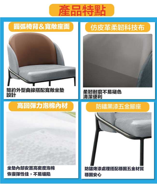 商品 介紹 | 【綠家居】可迪雙色科技布餐椅(二色可選) 二色可選+單張餐椅販售出貨+現代簡約風格+安心材質製造,使用放心+搭配居家更便利,整體採用防鏽黑漆五金腳座+鐵製椅身底框+進口仿皮革柔韌科技布+高回彈泡棉等材質製造 ,全由專人配送到家,專業安心服務,替你省下更多時間! 請注意:本賣場為單入餐椅販售(非2入以上組合賣場),接獲訂單時出貨以單張餐椅為單位出貨 【商品特色】 二色可選+單張餐椅販售出貨+現代簡約風格+安心材質製造,使用放心+搭配居家更便利 防鏽黑漆五金腳座+鐵製椅身底框+進口仿皮革柔韌科技布+高回彈泡棉等材質製造 此商品不需要DIY組立,此商品為組立後之成品 品質保證、專業設計、貼心服務 全由專人配送到家,專業安心服務,替您省下更多時間 |
