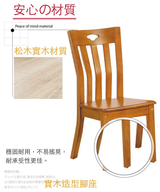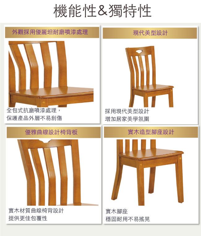 商品介紹 | 【綠家居】恩戈 典雅風實木餐椅 材質採用松木實木安心材質製造搭配外層採用優莉坦全包式耐磨噴漆處理,搭配現代典雅風設計+柚木紋色系等設計。產品免組裝+全由專人配送到家,專業安心服務,替你省下更多時間! 【商品特色】 材質採用松木實木安心材質製造 外層採用優莉坦全包式耐磨噴漆處理 此商品不需要自行組裝,專人組裝完成配送到府即可使用 品質保證、專業設計、貼心服務 全由專人配送到家,專業安心服務,替你省下更多時間 |