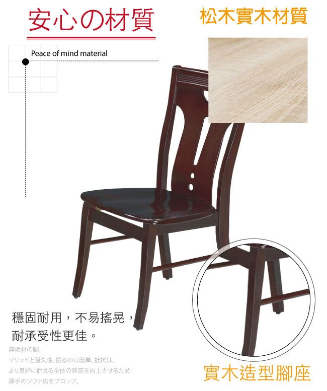 材質 | ◆產品名稱: 【綠家居】密特 優雅風實木餐椅四入組合(二色可選+四張組合出貨) 餐椅尺寸:(寬)44x(深)41x(高)95/公分 ◆材質: 餐椅材質:松木實木+實木造型腳座 噴漆:防潮耐磨噴漆處理 請注意:本賣場為四入餐椅組合販售,接獲訂單時出貨以四張餐椅為單位出