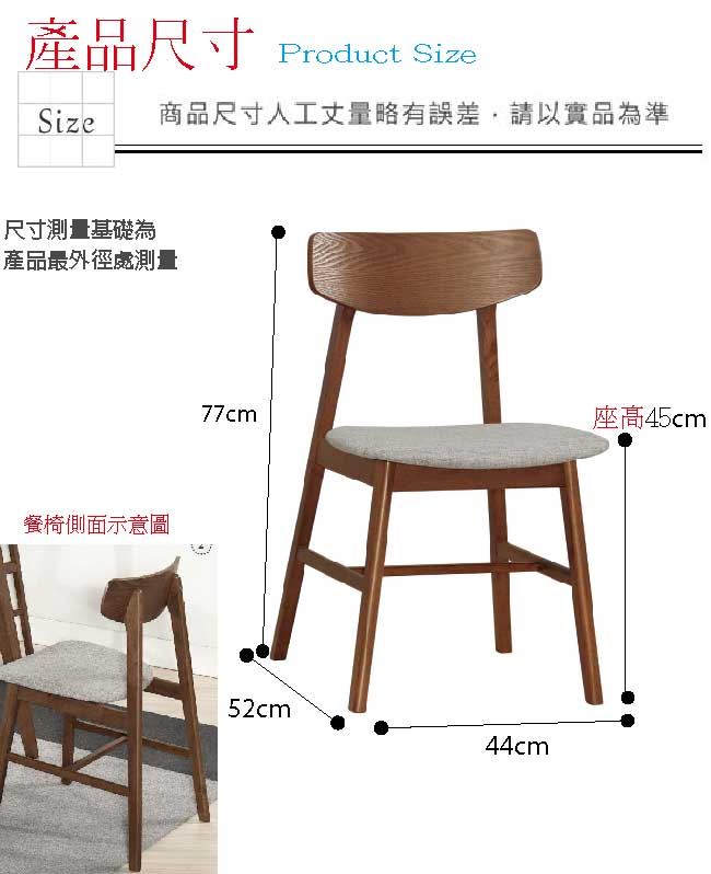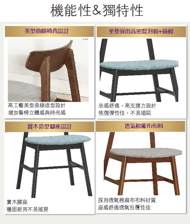 材質 | ◆產品名稱: 【綠家居】拜登 北歐風棉麻布實木單人餐椅2入組合 (二色可選+二張組合出貨) 餐椅尺寸:(座寬)44x(深)52x(高)77/公分 ◆材質: 餐椅材質:橡膠木實木+透氣棉麻布料+高密度泡棉 噴漆:防潮耐磨噴漆處理 請注意:本賣場為二入餐椅組合販售,接獲訂單時出貨以二張餐椅組合為單位出貨