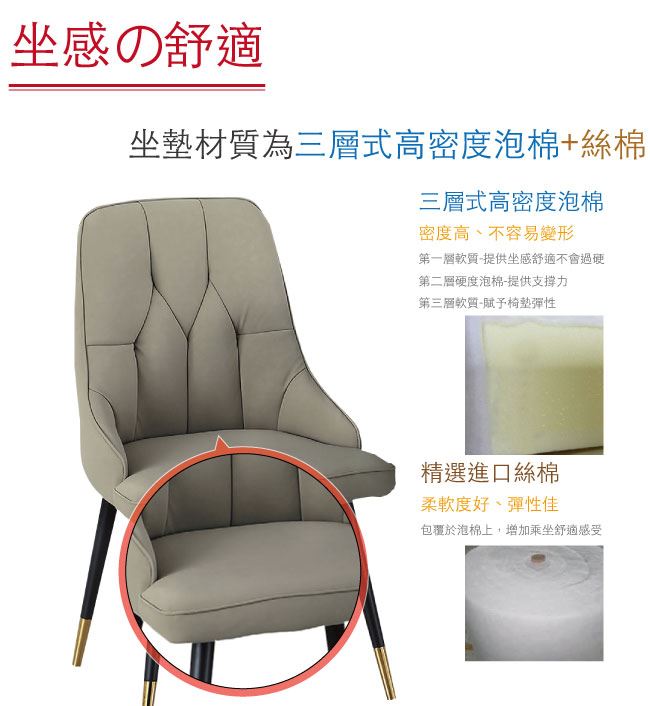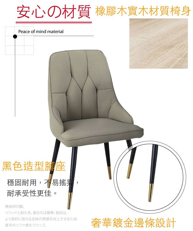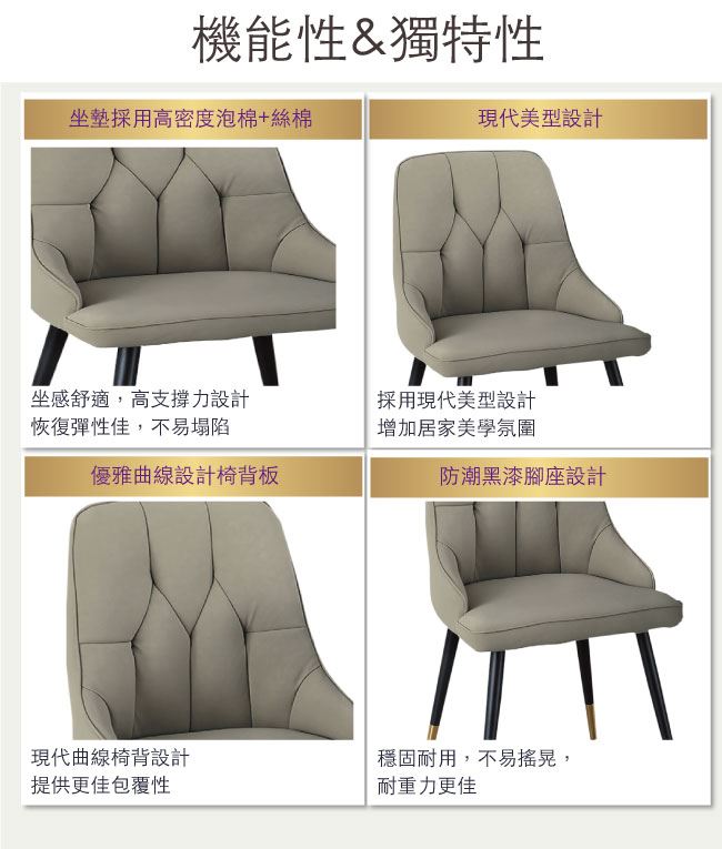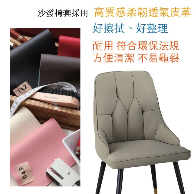 商品介紹 | 【綠家居】維亞 北歐灰貓抓皮革餐椅 材質採用松木實木椅身+耐刮貓抓皮革+-高密度高彈性泡棉+防潮黑漆&鍍金邊框腳座等安心材質,搭配現代歐風設計+北歐灰色系等設計。產品免組裝+全由專人配送到家,專業安心服務,替你省下更多時間! 【商品特色】 材質採用松木實木椅身+耐刮貓抓皮革+-高密度高彈性泡棉+防潮黑漆&鍍金邊框腳座等安心材質 搭配現代歐風設計+北歐灰色系等設計 此商品不需要自行組裝,專人組裝完成配送到府即可使用 品質保證、專業設計、貼心服務 全由專人配送到家,專業安心服務,替你省下更多時間 |