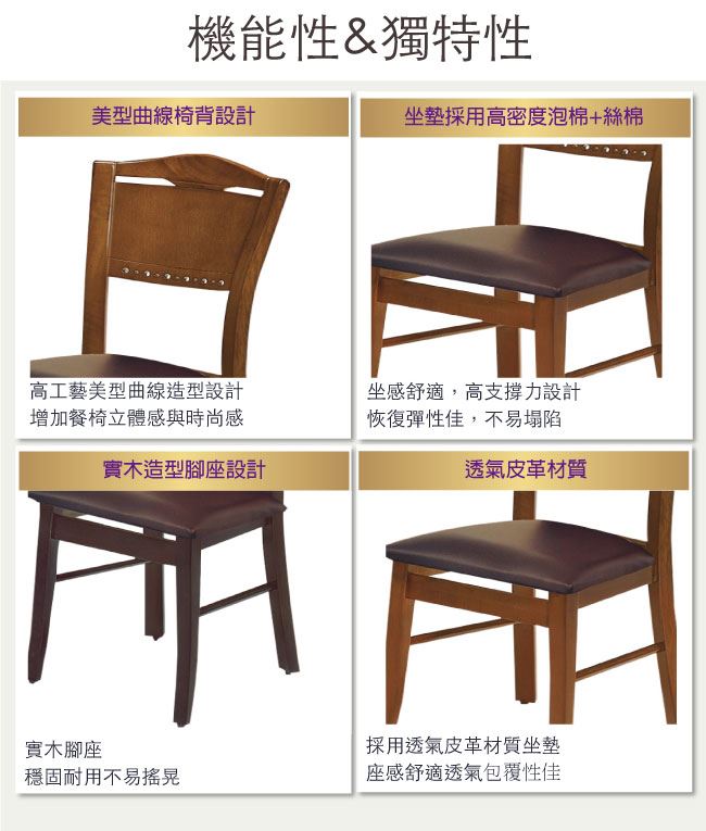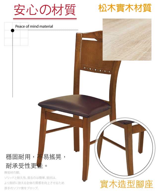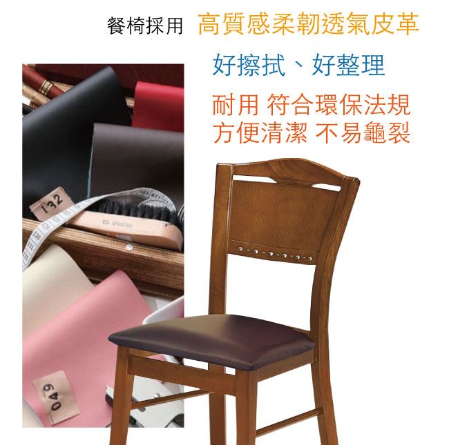 材質 | ◆產品名稱: 【綠家居】米巴特 優雅法式風透氣皮革實木餐椅(二色可選+單張出貨) 餐椅尺寸:(寬)43.5x(深)43x(高)89/公分 ◆材質: 餐椅材質:松木實木+實木造型腳座+透氣PU皮革+高密度泡棉 噴漆:防潮耐磨噴漆處理 請注意:本賣場為單入餐椅販售,接獲訂單時出貨以一張餐椅為單位出貨