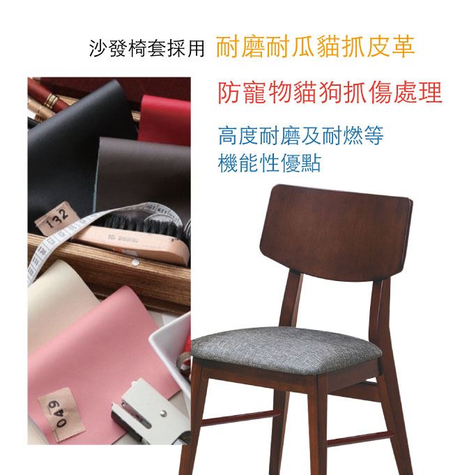 材質 | ◆產品名稱: 【綠家居】歐巴特 北歐風貓抓皮革實木餐椅(二色可選+單張出貨) 餐椅尺寸:(座寬)43x(深)53x(高)78/公分 ◆材質: 餐椅材質:松木實木+實木造型腳座+耐刮貓抓皮革+高密度泡棉 噴漆:防潮耐磨噴漆處理 請注意:本賣場為單入餐椅販售,接獲訂單時出貨以一張餐椅為單位出貨
