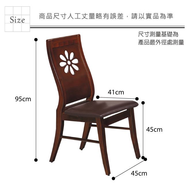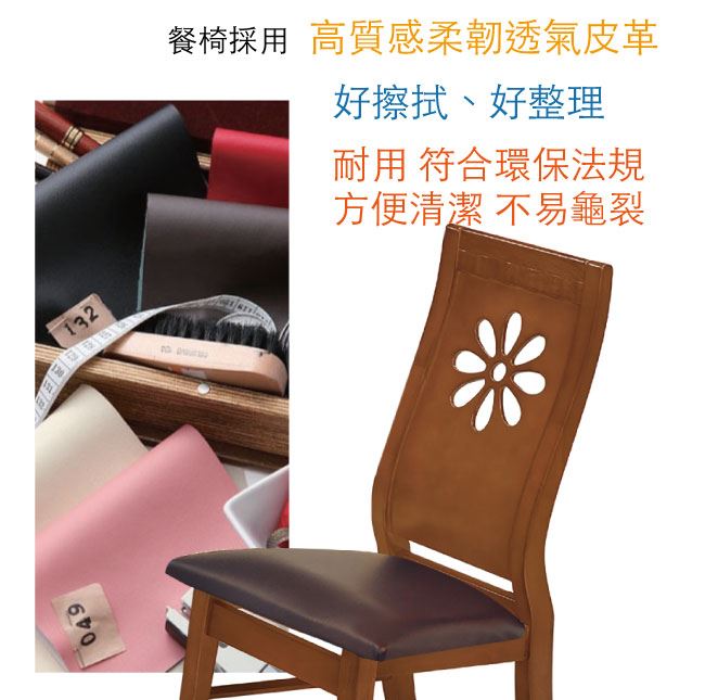 材質 | ◆產品名稱: 【綠家居】羅考特 優雅風透氣皮革實木餐椅二入組合(二色可選+二張組合出貨) 餐椅尺寸:(寬)45x(深)47x(高)95/公分 ◆材質: 餐椅材質:松木實木+實木造型腳座+透氣PU皮革+高密度泡棉 噴漆:防潮耐磨噴漆處理 請注意:本賣場為二入餐椅組合販售,接獲訂單時出貨以二張餐椅組合為單位出貨