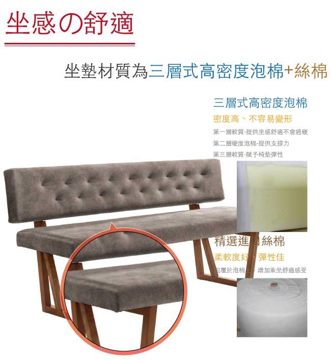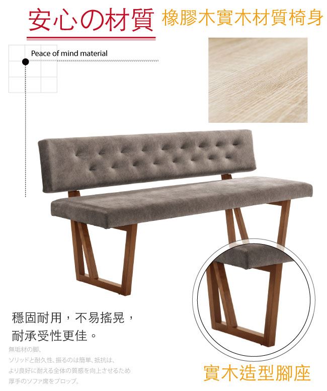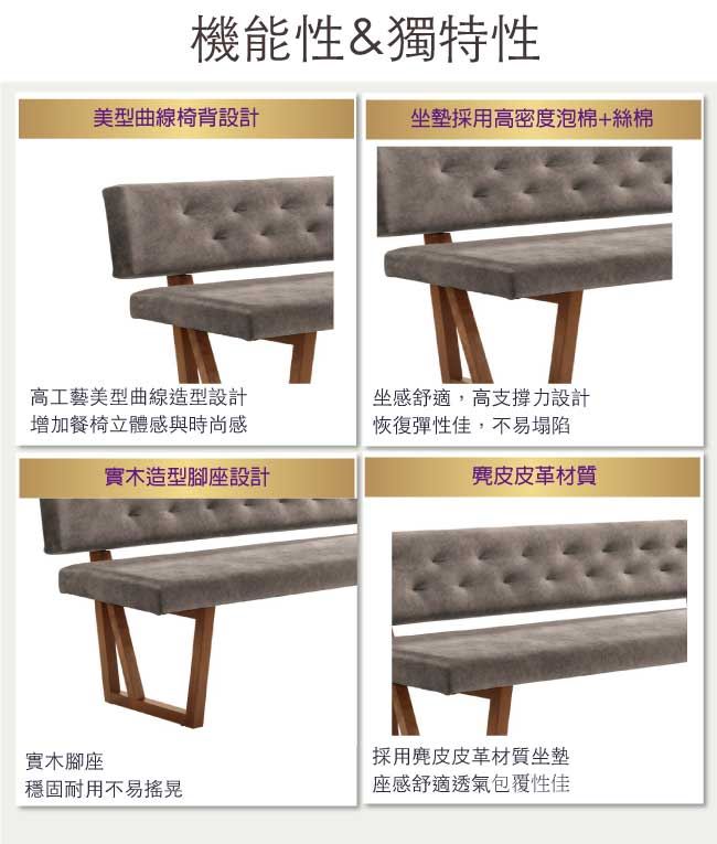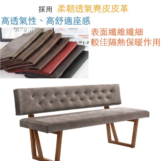 材質 | ◆產品名稱: 【綠家居】羅歐米 北歐風麂皮皮革實木雙人餐椅 餐椅尺寸:(座寬)161x(深)59.5x(高)79.5/公分 ◆材質: 餐椅材質:橡膠木實木+柔韌麂皮皮革+高密度泡棉 噴漆:防潮耐磨噴漆處理 請注意:本賣場為單入餐椅販售,接獲訂單時出貨以單張餐椅為單位出貨