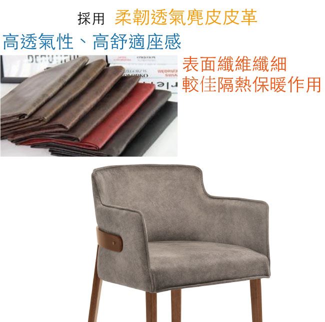 橡膠木實木+柔韌麂皮皮革