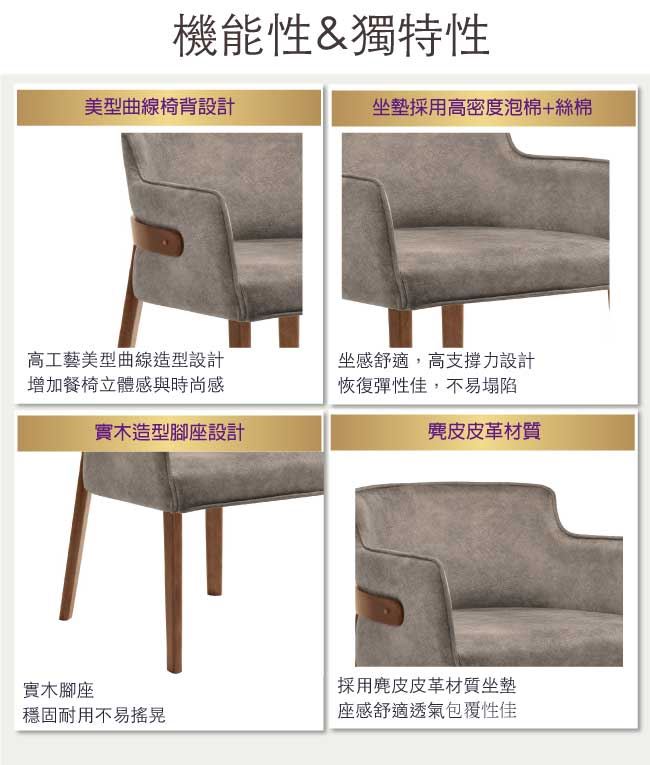 【綠家居】羅歐米 北歐風麂皮皮革實木單人餐椅(單張出貨)