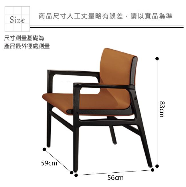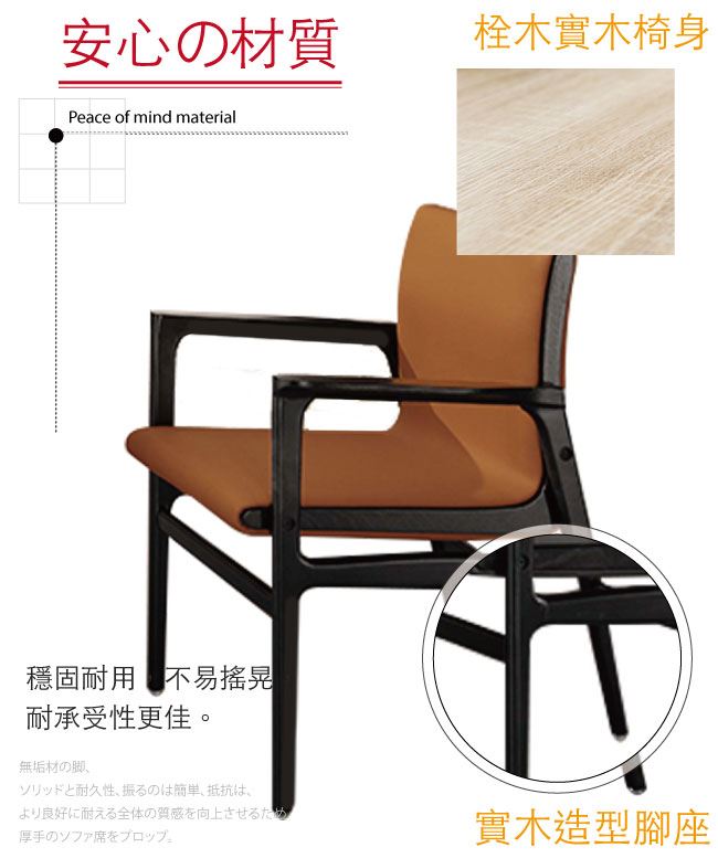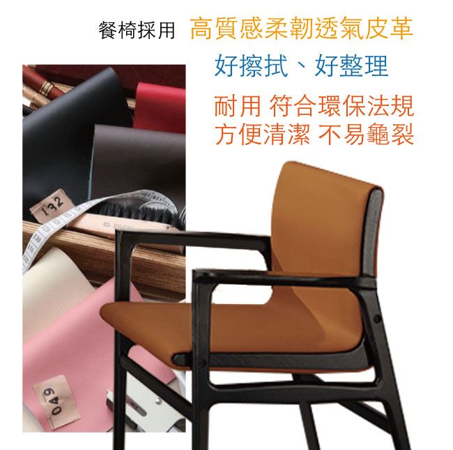 材質 | ◆產品名稱: 【綠家居】哈爾 時尚皮革實木雙扶手餐椅(二色可選) 餐椅尺寸:(寬)59x(深)56x(高)83/公分 ◆材質: 材質:栓木實木椅身&扶手&腳座+柔韌透氣皮革+高密度泡棉