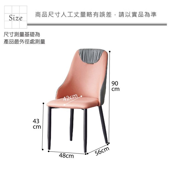 尺寸:(寬)48(深)56(椅高)90/公分 座高:43/公分 座深:42/公分 ◆材質: 材質:木製&金屬框架+透氣PU皮革+高密度泡棉+耐重五金腳座