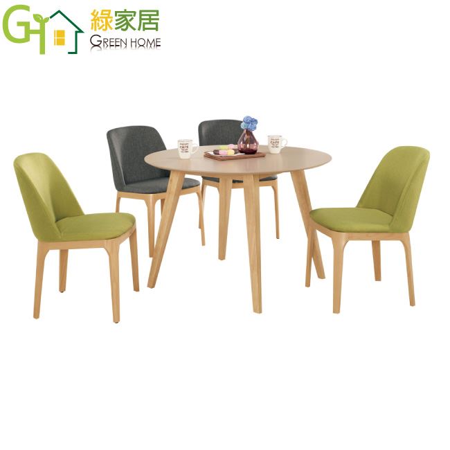 【綠家居】羅爾克3.6尺實木休閒桌椅組合(餐椅二色系可選+一桌四椅組合)