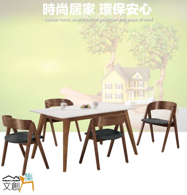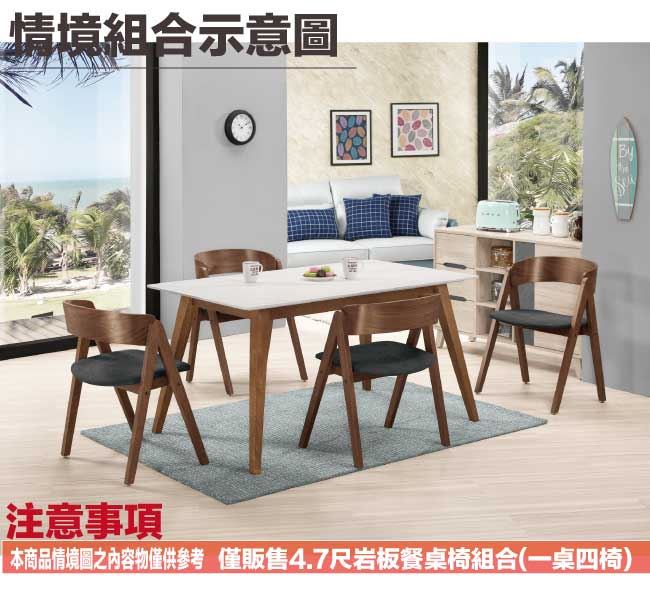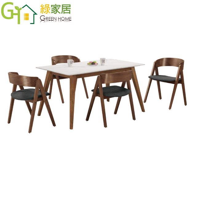 【綠家居】巴卡莉4.7尺岩板實木餐桌布餐椅組合(一桌四椅組合)