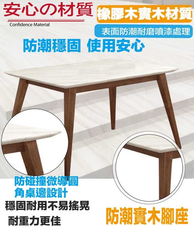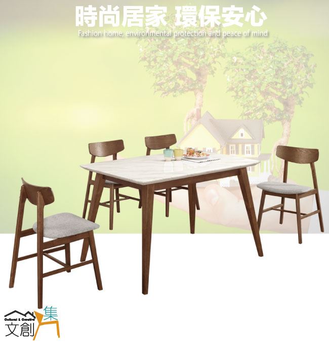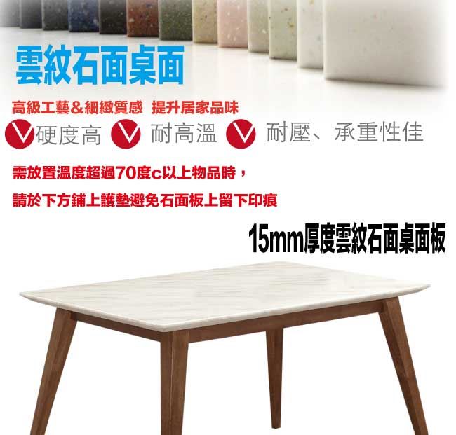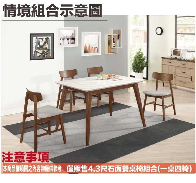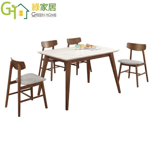【綠家居】韋斯卡實木4.3尺雲紋石面餐桌布餐椅組合(一桌四椅組合)