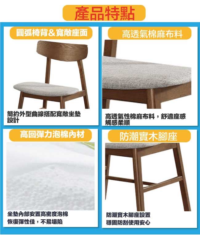 商品 介紹 | 【綠家居】韋斯卡實木4.3尺雲紋石面餐桌布餐椅組合(一桌四椅組合) 胡桃木紋色系+餐桌椅一桌四椅組合+現代簡約風格+安心材質製造,使用放心+搭配居家更便利,整體採用橡膠木實木+防潮實木腳座+15mm雲紋石面桌面板+橡膠木實木外貼實木皮處理+透氣棉麻布+高回彈海綿+外層防潮耐磨噴漆處理等材質製造 ,全由專人配送到家,專業安心服務,替你省下更多時間! 【商品特色】 胡桃木紋色系+餐桌椅一桌四椅組合+現代簡約風格+安心材質製造,使用放心+搭配居家更便利 橡膠木實木+防潮實木腳座+15mm雲紋石面桌面板+橡膠木實木外貼實木皮處理+透氣棉麻布+高回彈海綿+外層防潮耐磨噴漆處理等材質製造 此商品不需要DIY組立,此商品為組立後之成品 品質保證、專業設計、貼心服務 全由專人配送到家,專業安心服務,替您省下更多時間 |
