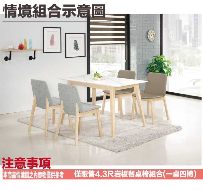 【綠家居】克米莉4.3尺岩板實木餐桌椅組合(餐椅二色系可選+一桌四椅組合)