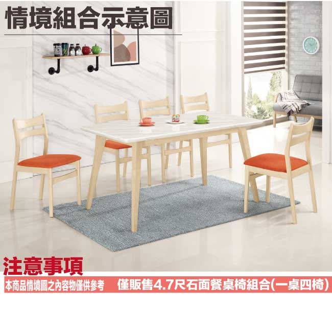 【綠家居】德莉特實木4.7尺雲紋石面餐桌布餐椅組合(一桌四椅組合)
